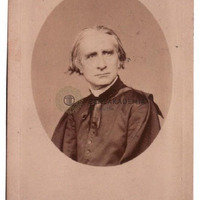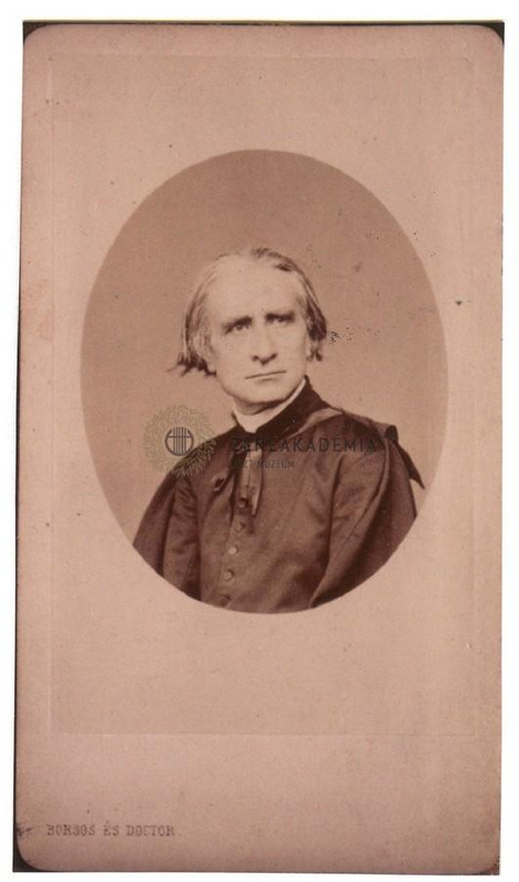 Ovális kivágatú kép. Liszt Ferenc reverendát és palástot visel. Borsos és Doctor 1865-ös fényképéről készült színes másolat.