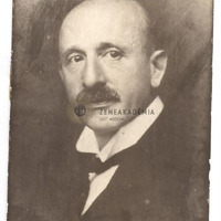 A zongoraművész kabátot és álló nyakú inget visel sötét nyakkendővel. Kissé balra fordulva szembe néz. A fénykép bal felső részén kézírást utánzó nyomtatott felirat: "Thomán István".