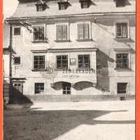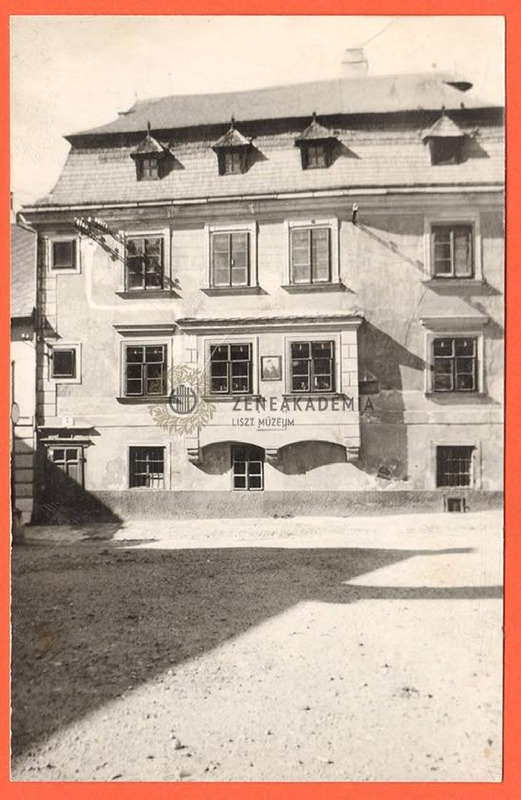 Liszt anyjának szülőházát ábrázoló képeslap. A hátán nyomtatott adatok:"Geburtshaus der / Anna Maria Liszt, geb. Laager (geb. 1788)./ Mutter des Tondichters / Franz Liszt / Krems-Donau, Theaterplatz 5."