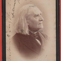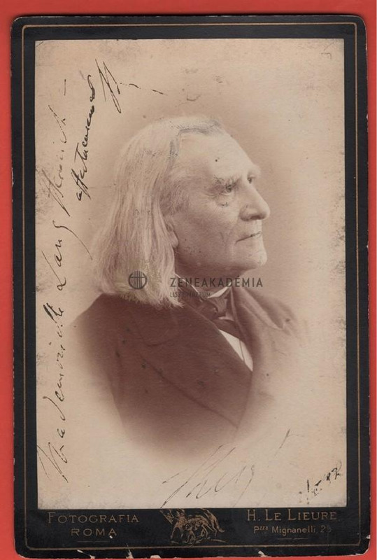 Az idős Liszt jobb profilból látható, kabátot, álló galléros inget és csokornyakkendőt visel. A fénykép bal oldalán és alján sajátkezű ajánlás: "Mademoiselle Lang Herzlich - affectueusement FLiszt 2/III 82"