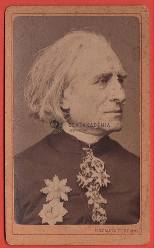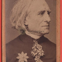 Liszt Ferenc jobb félprofilban látható, reverendát visel, számos rendjellel a mellén.