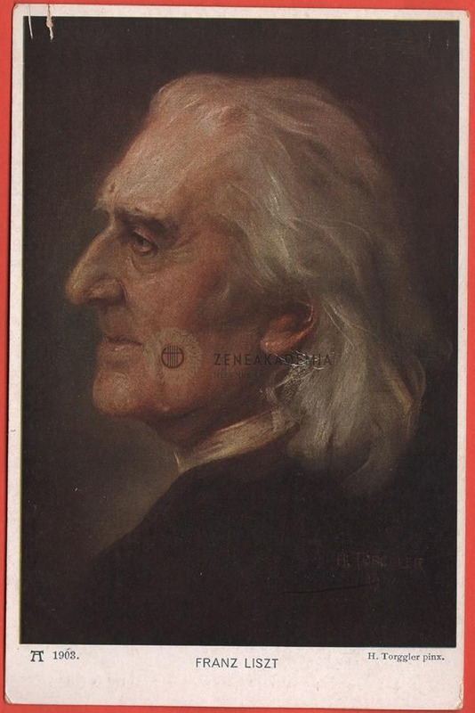 Hermann Torggler 1903-ban készült olajfestményének sokszorosítása. Az idős Liszt Ferenc bal profilban látható.