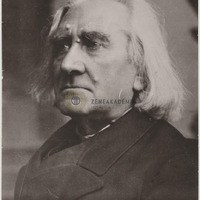 Liszt Ferenc bal félprofilból látható, kabátot és abbégallért visel.