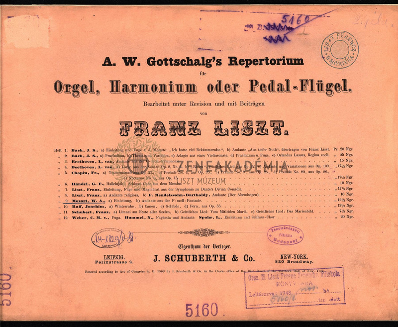 Gottschalgs Repertorium für Orgel, Harmonium oder Pedal-Flügel. [I. Serie,] Heft 9. a/ Einleitung, b/Andante aus der F-moll Fantasie.