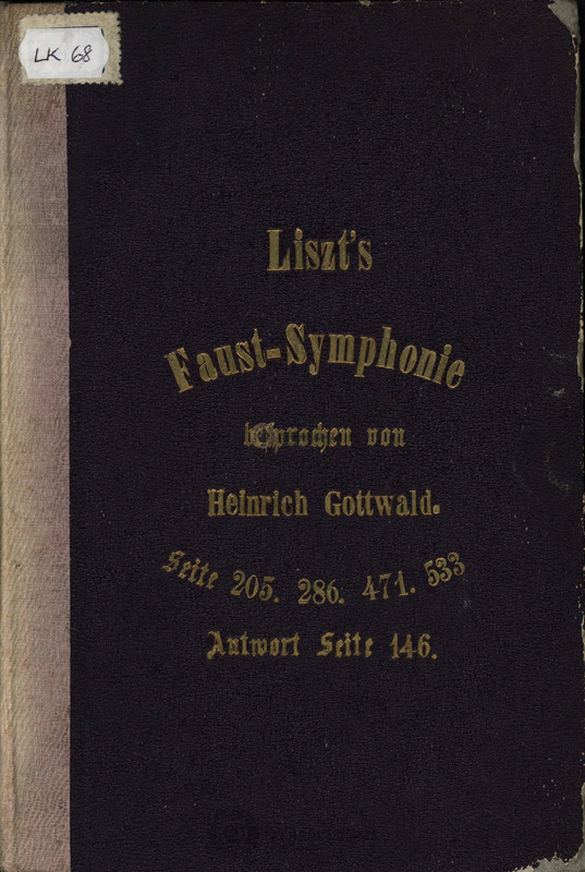 Liszts Faust-Symphonie. (Aus den "Schlesischen Provinzblättern" Jg. 1864. Antwort im 3ten Heft 1865.)
