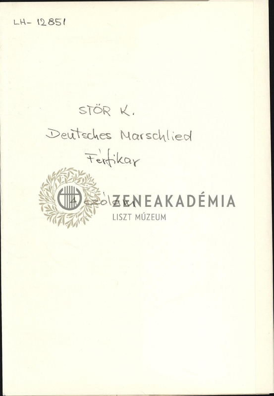 Deutsches Marsch-Lied. [Text] von Gustav Steinacker. Für vierstimmigen Männerchor mit Begleitung von Blasinstrumenten oder des Pianoforte. (Singstimmen)