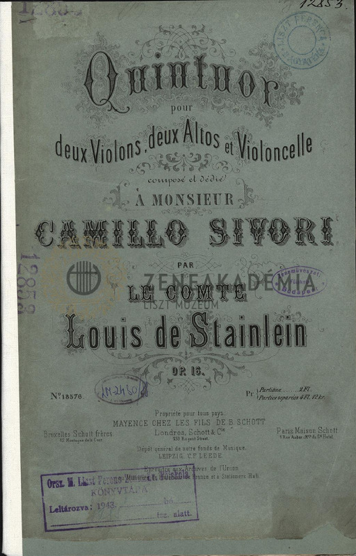 A partitúra és a szólamok különböző jelzeten. Camillo Sivorinak szóló nyomtatott ajánlással.