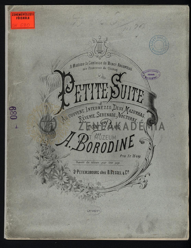 Két példány, eltérő jelzetekkel. Lisztnek szóló kéziratos ajánlással: "? F. Liszt, / Hommage repectueux / de lauteur. / A. de Borodine."