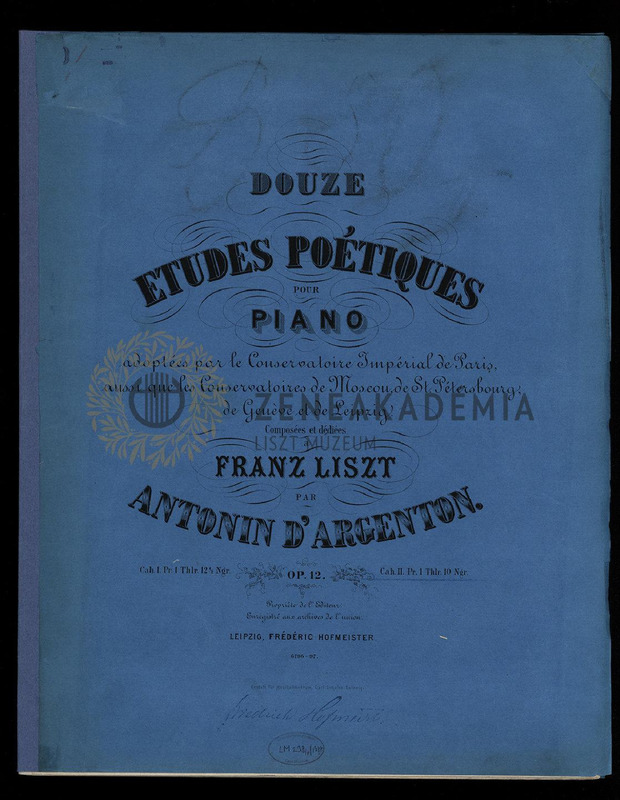 7. Cascade; 8. Cantil?ne; 9. Vénitienne; 10. Insomnie; 11. Danse villageoise; 12. Les Lutins. Lisztnek szóló nyomtatott ajánlással.