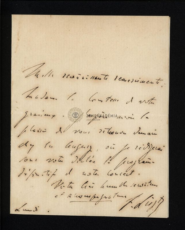 Liszt Ferenc levele Semseyné Csáky Irmához.