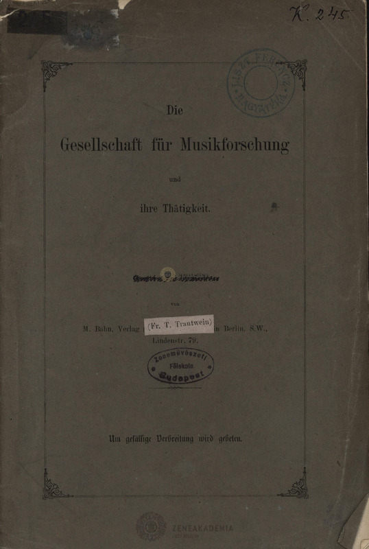 Die Gesellschaft für Musikforschung und ihre Tätigkeit.