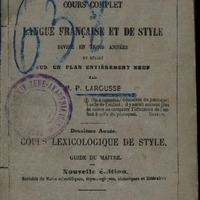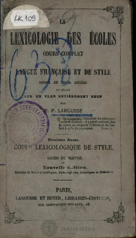 La lexicologie des écoles. Cours complet de langue francaise et de style (divisé en 3 années). 2. année: Cours lexicologique de style. Partie du maître.