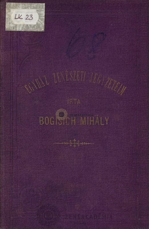 A szerző Lisztnek szóló kézírásos ajánlásával: "Liszt Ferenc albanoi kanonok Úrnak jótevőmnek mély tiszteletem jeléül. Bpest. Január 24-én 1881. Bogisich Mihály." Melléklet: szignált szentkép a szerző aranymiséjének emlékére.