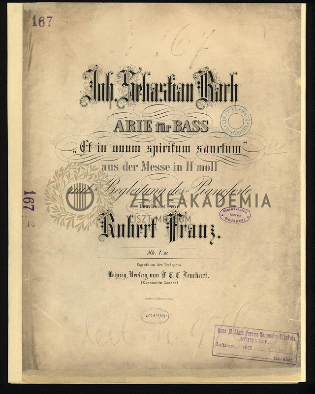 Arie für Bass "Et in unum Spiritum Sanctum" aus der Messe in H moll mit Begleitung des Pianoforte, [BWV 232. No.19].