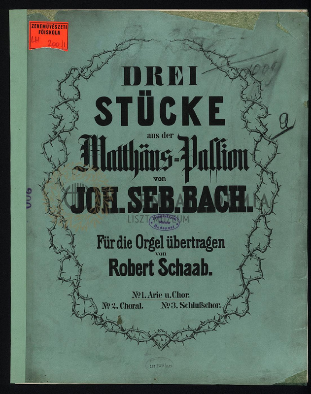 Drei Stücke aus der Matthäus-Passion für die Orgel übertragen. (BWV 244. No.20, 29, 68). No. 1. Arie und Chor "Ich will bei meinem Jesu wachen…".
