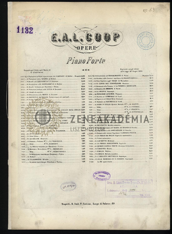 - Campanie felice. Op. 63. Fantasie per piano-forte sopra favorite canzoni napolitane.