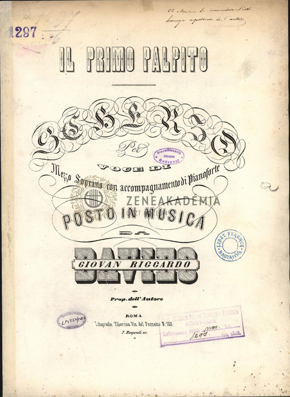 Il primo palpito. Scherzo per voce di mezzo soprano con accompagnamento di piano-forte.