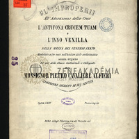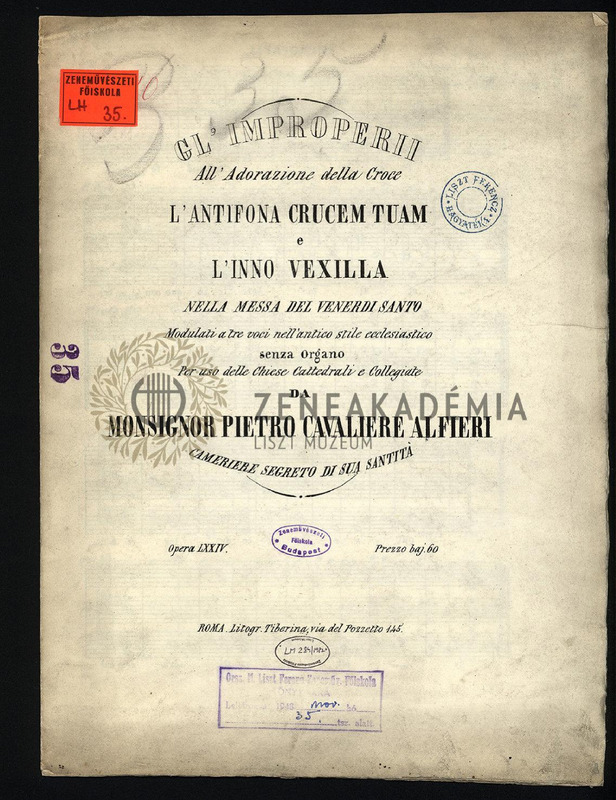 GlImproperii, Op. 74. Alladorazione della Croce. Lantifona Crucem tuam e linno Vexilla nella messa del venerdi santo; Modulati a tre voci [maschili] nellantico stile ecclesiastico senza organo.