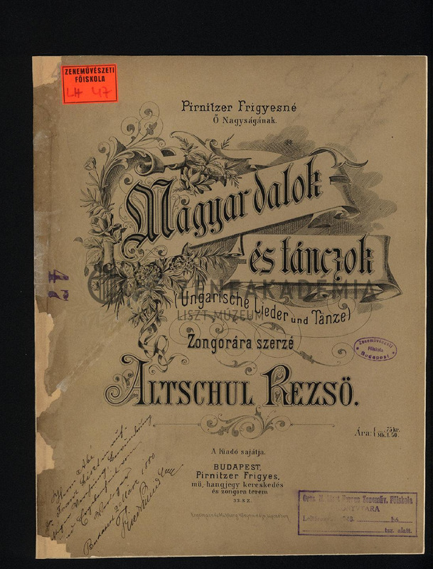 A kiadó Lisztnek szóló kéziratos ajánlásával: "Herrn Ab[b]é/Franz Liszt in auf-/[richtige]r Verehrung, Bewunderung/[u]nd Ergebenheit vom/Verleger/ Budapest 2 März 1880/ Friedr. Pirnitzer."