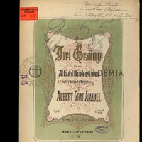 1. Der schwere Abend (N. Lenau); 2. Wanderers Nachtlied (Göthe); 3. "In meinem garten die Welken" (Aus den Mädchenliedern von E. Geibel). Lisztnek szóló kézírásos ajánlással: "Dem großen Meister / in dankbarer Ehrfurcht / Wien, 1n März 873. Albert Amadei." Liszt (??) bejegyzéseivel.