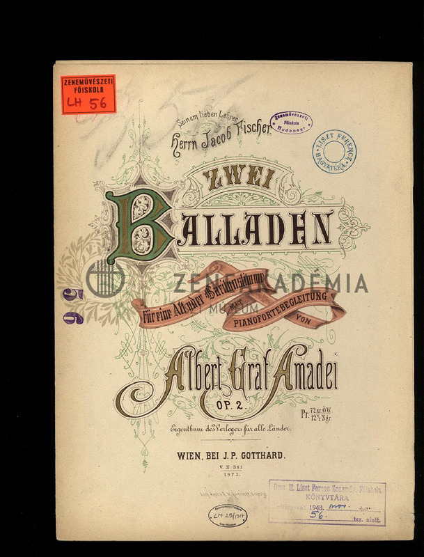 Zwei Balladen für eine Alt oder Baritonstimme mit Pianofortebegleitung. Op. 2.