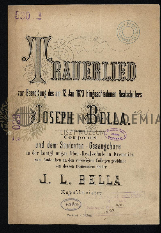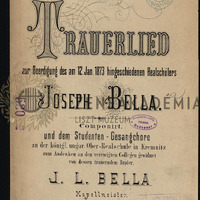 Trauerlied zur Beerdigung des am 12. Jan. 1873 hingeschiedenen Realschülers Joseph Bella [für] (Sopran, Alt, Tenor, Bass). Componirt [...] von dessen trauerndem Bruder, [Partitur].