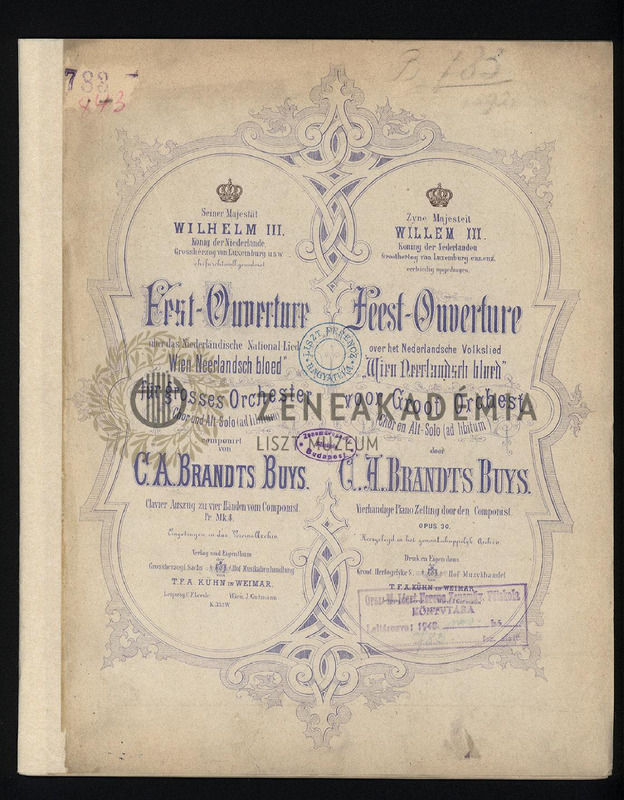 Fest-Ouverture über das Niederländische National-Lied "Wien Neerlandsch bloed" für grosses Orchester, Chor und Alt-Solo (ad libitum). Op. 30. Clavier-Auszug zu vier Händen.