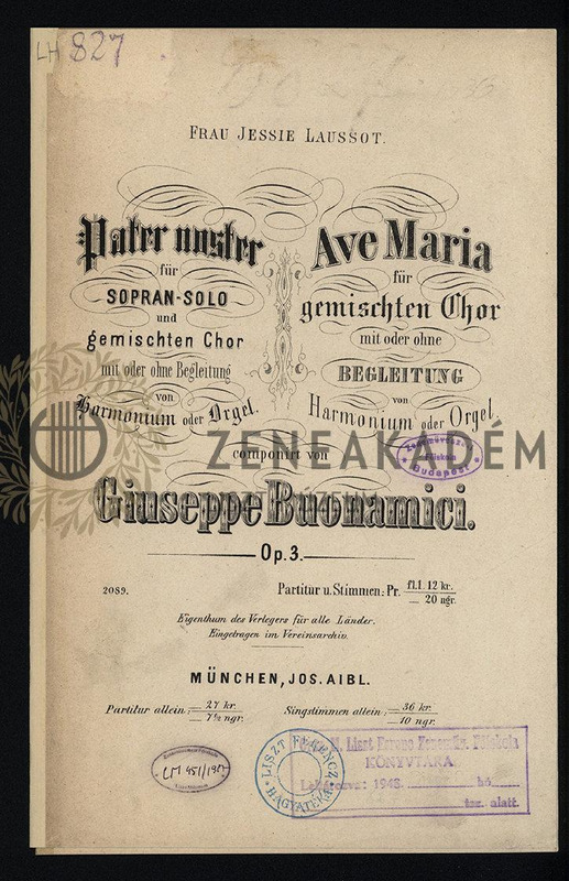Pater noster für Sopran-solo und gemischten Chor mit oder ohne Begleitung von Harmonium oder Orgel, Op. 3. [No. 1.]. Ave Maria für gemischten Chor mit oder ohne Begleitung von Harmonium oder Orgel. Op. 3. [No.2.].