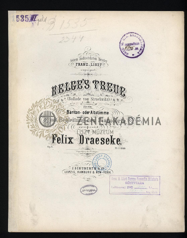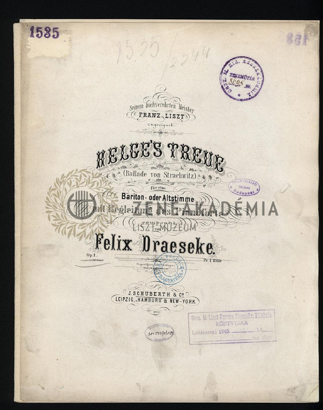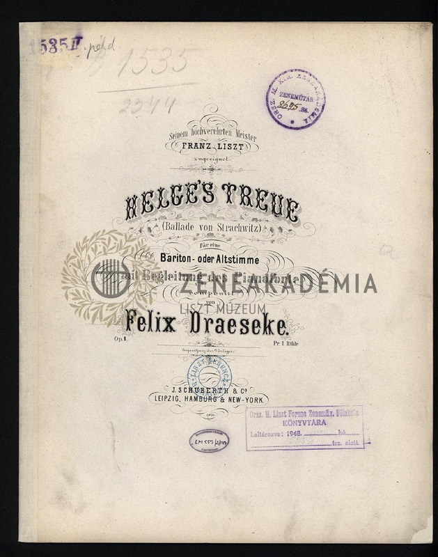 Lisztnek szóló nyomtatott ajánlással: "Seinem hochverehrten Meister Franz Liszt zugeeignet." E művön alapul Liszt azonos című melodrámája. 4 példány.