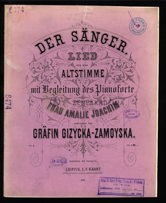 Der Sänger. Lied für eine Altstimme mit Begleitung des Pianoforte. Op. 6.