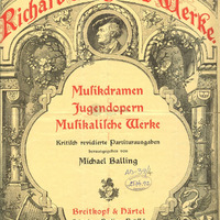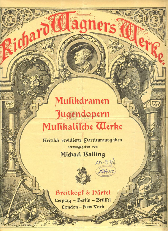 A Breitkopf és Härtel cég Wagner zenedrámáinak, ifjúkori operáinak és zenei műveinek Michael Balling által készített revideált, kritikai partitúra-kiadásának címlapja. Pontos keltezés nem látható. A dokumentum további oldalain: 1912. húsvétja szerepel dátumként.