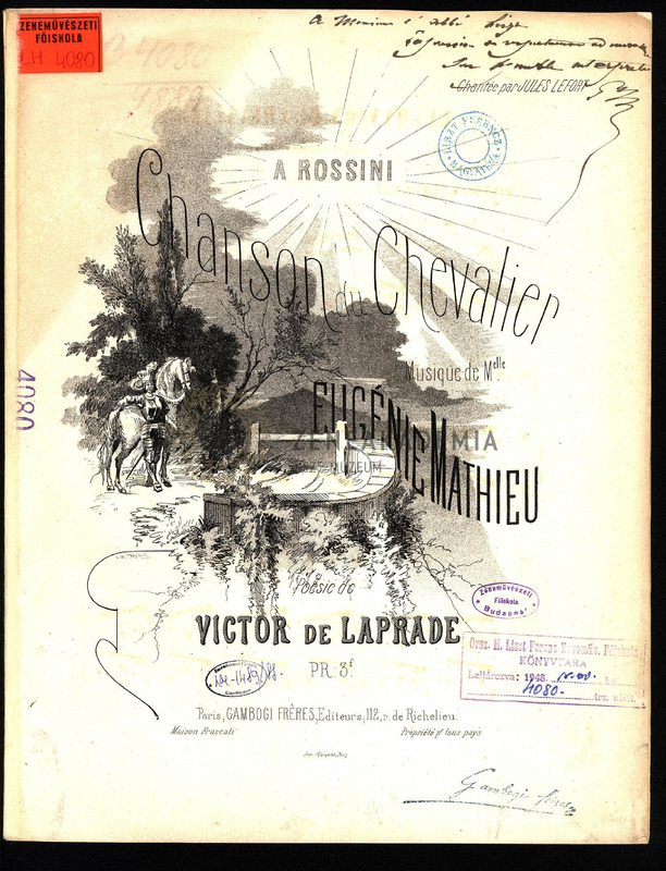 Lisztnek szóló kézírásos ajánlással: "? Monsieur lAbbé Liszt Expression de respectueuse admiration son humble interpr?te E M".