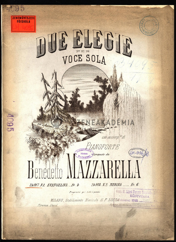 - Due Elegie per Voce Sola con accomp. di pianoforte. No.1. Evangelina.
