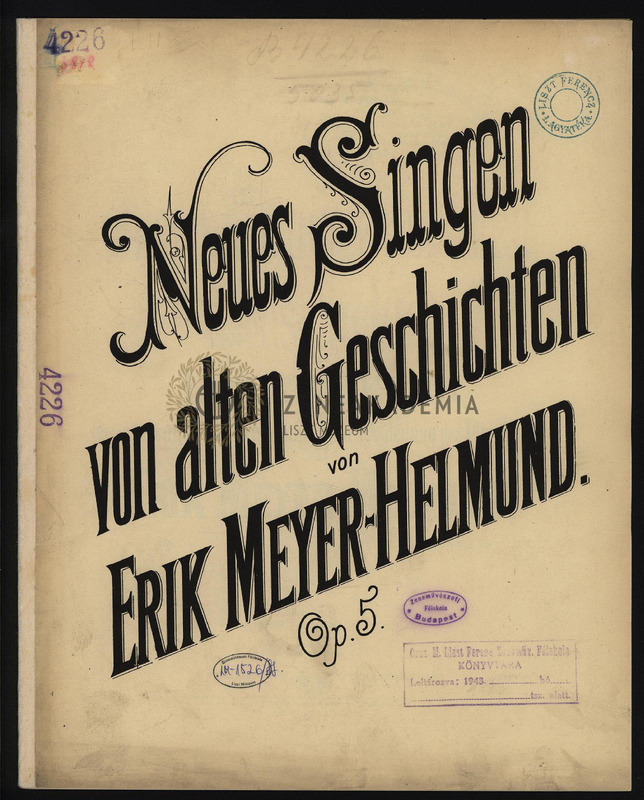 Neues Singen von Alten Geschichten. Liebeslieder für eine mittlere Singstimme mit Begleitung des Pianoforte. Op. 5.