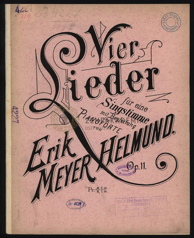 No. 1. Hannchen beim Pfarrer, von P. K. Rosegger; No. 2. Am Kreuzweg, von H. Heine; No. 3. "Da droben im dunkeln Walde", von Erik Meyer-Helmund; No. 4. Mädchenlied, von Erik Meyer-Helmund.