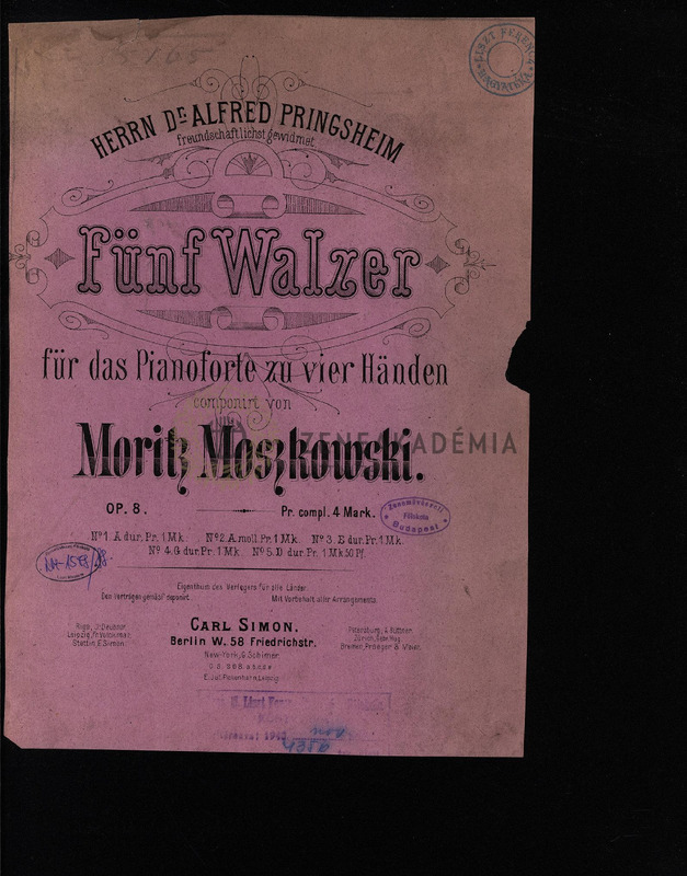 Fünf Walzer für das Pianoforte zu vier Händen. Op. 8.