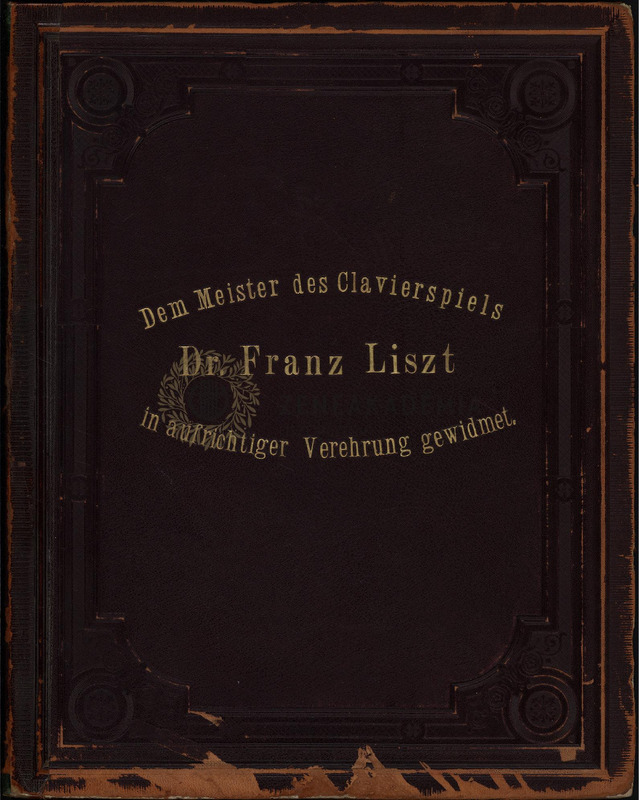 A bőr díszkötésbe nyomva Lisztnek szóló ajánlás: "Dem Meister des Claveirspiels Dr. Franz Liszt in aufrichtiger Verehrung gewidmet". Egybekötve, téves sorrendben.