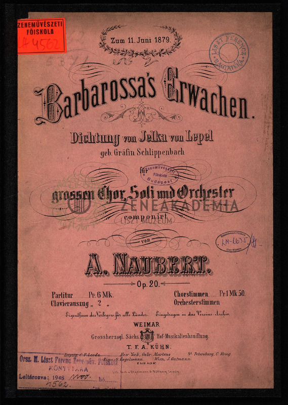Barbarossas Erwachen. Dichtung von Jelka von Lepel für grossen Chor, Soli und Orchester, Op. 20. Partitur.