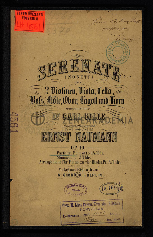 Lisztnek szóló kézírásos ajánlással: "Herrn Dr. Franz Liszt verehrungsvoll der Verfasser."