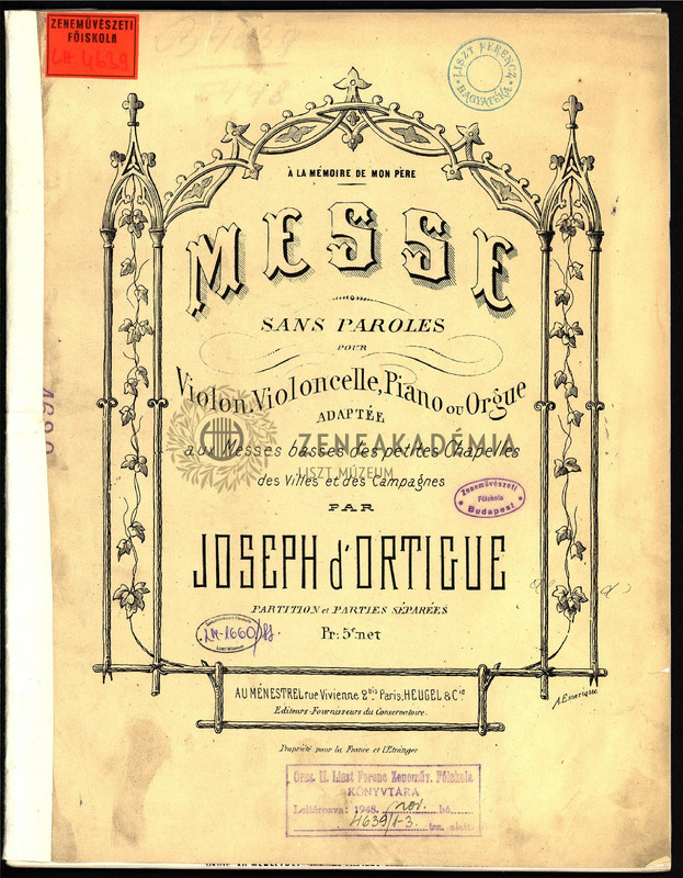 Messe sans paroles pour Violon, Violoncelle, Piano ou Orgue. Partition et parties séparées.