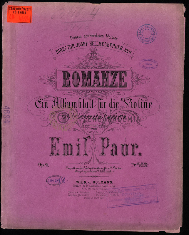 Romanze. Ein Albumblatt für die Violine mit Begleitung des Pianoforte. Op. 4 [Partitur und Violine-Stimme].