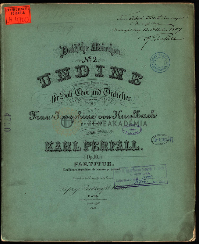 Lisztnek szóló kézírásos ajánlással: "Dem Abbé Liszt in inniger Verehrung München den 12. Oktober 1867 K. Perfall."