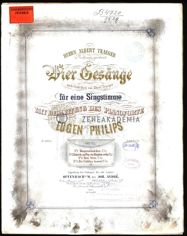 Vier Gesänge nach Gedichten von Albert Traeger für eine Singstimme mit Begleitung des Pianoforte. Op. 21.