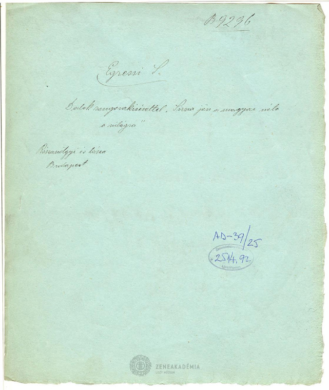 - Kézzel írt feljegyzés a következő felirattal: Egressi, Dalok zongorakísérettel, Rózsavölgyi és társa, Budapest.Keltezés nincs.