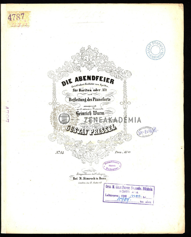 Die Abendfeier. Geistliches Gedicht von Spitta. Für Bariton oder Alt. Mit Begleitung des Pianoforte. No. 13.