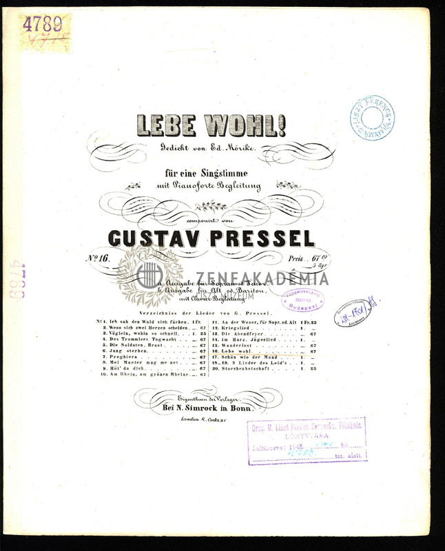 Lebe wohl! Gedicht von Ed[uard] Mörike. Für eine Singstimme mit Pianoforte Begleitung. No. 16.