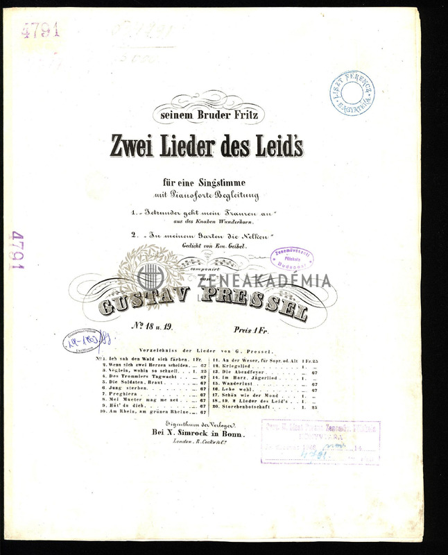 1. "Jetzunder geht mein Trauren au" aus des Knaben Wunderhorn. 2. "In meinem Garten die Nelken." Gedicht von Em. Geibel.