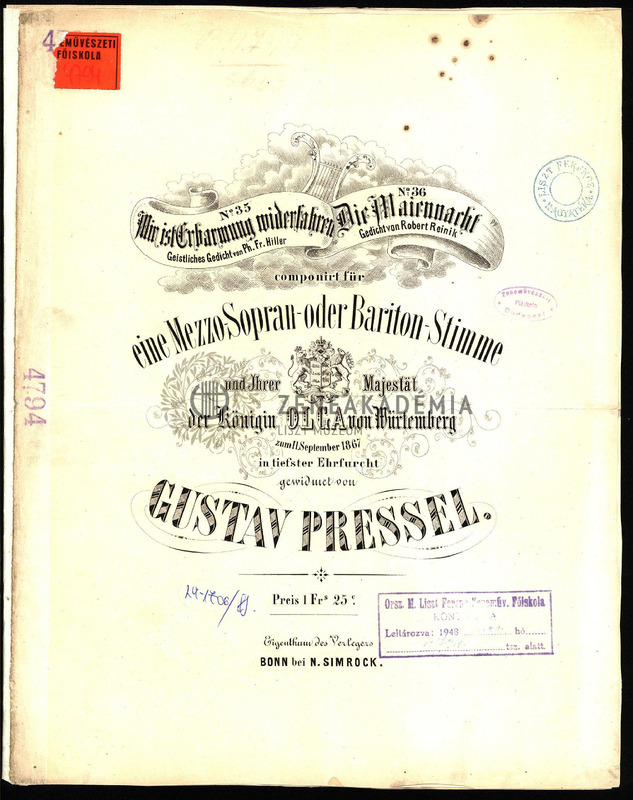 "Die Maiennacht." No. 36. Gedicht von Robert Reinik. Componirt für eine Mezzo-Sopran oder Bariton-Stimme zum 11. September 1867.