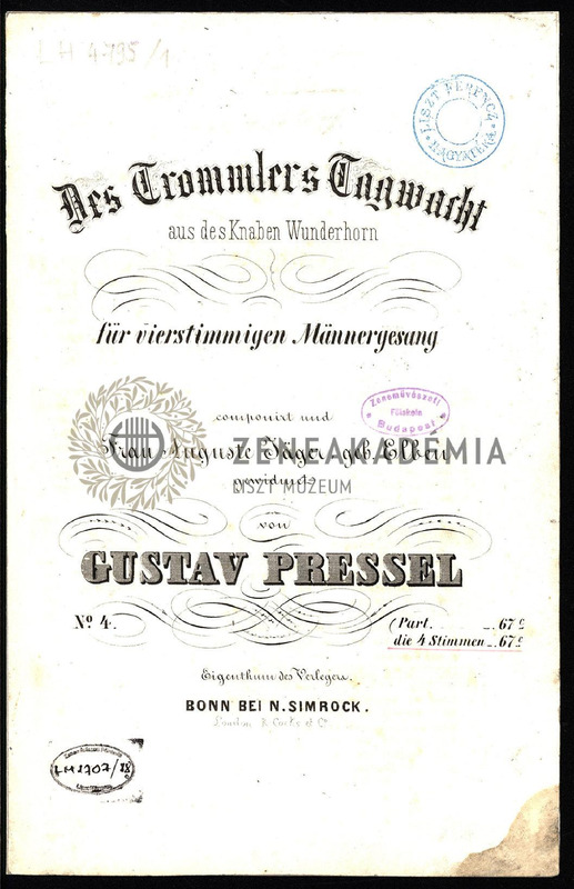 "Des Trommlers Tagwacht" aus des Knaben Wunderhorn für vierstimmigen Männergesang. No. 4. [Stimmen].