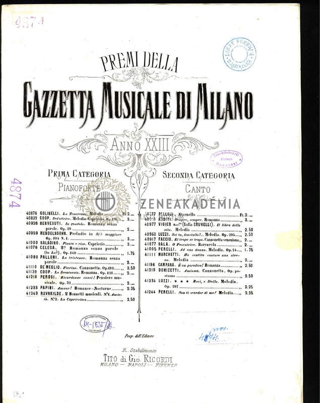 2 Bozzetti musicali per Pianoforte. Premi della Gazzetta Musicale di Milano, 1A categoria, anno XXII. No.12.